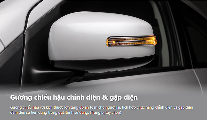 | Kính chiếu hậu | Cùng màu với thân xe, chỉnh điện | Cùng màu với thân xe, chỉnh điện, tích hợp đèn báo rẽ | Cùng màu với thân xe – Chỉnh điện có tích hợp đèn báo rẽ |