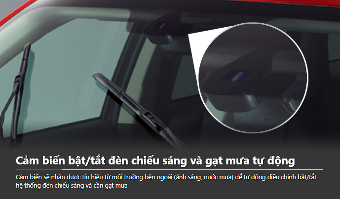 | Cảm biến bật/tắt đèn chiếu sáng và gạt mưa tự động | Không | Không | Có |