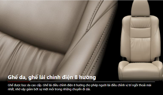 | Chất liệu ghế | Nỉ | Da | Da |